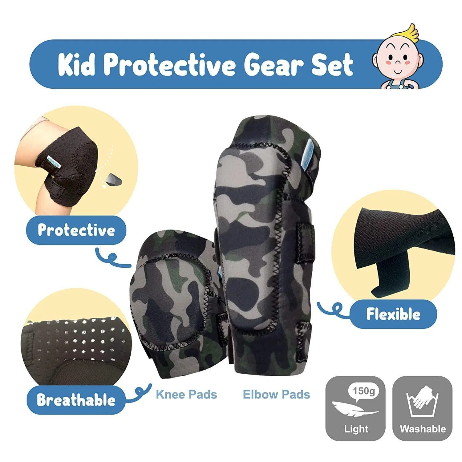 [1st Gen.] Innovative Soft Kids Elbow and Knee Pads with Bike Gloves (Olive Camouflage)